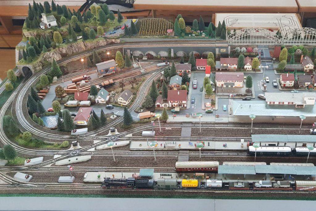 M-Gleise mit durchgehendem Puko, das Rollmaterial, die Häuser, die Bäume, fast alles original aus den 50er Jahren – dies ist mit ein Geheimnis weshalb diese Anlage wirklich den Charm der 50er Jahre wiederspiegelt.