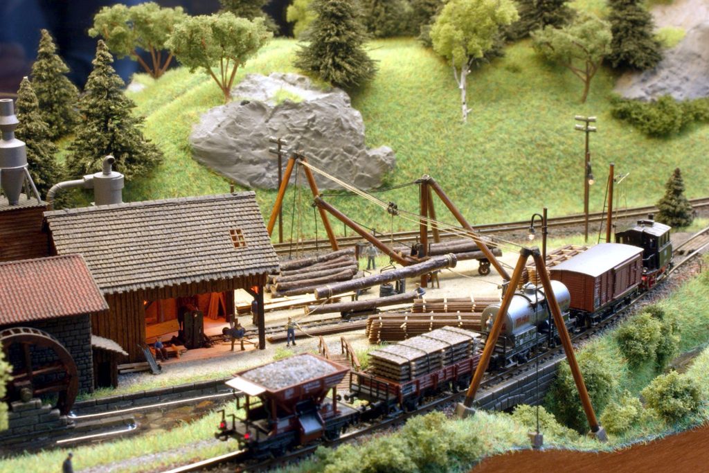 - Das Sägewerk hat neben einem langsam laufenden Wasserrad eine motorisierte, echt sägende Gattersäge, siehe auch MM 01/2010 (Auszug in Ordner 7.)